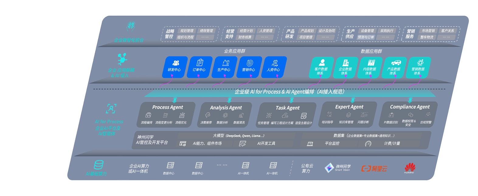 安币问学智车解决方案是一套基于AI技术的汽车行业智能化系统,,,,覆盖从底层算力到顶层AI应用的全栈方案。。。方案由算力层、、、模型层和应用层组成:算力层,,,,方案支持多种一体机配置,,,,具备云端灵活部署、、、、多云适配以及动态优化计算资源的能力;模型层,,,,安币问学平台版提供了企业级AI应用一站式构建与管理平台,,支持基于后训练强化技术的汽车企业专属模型的训练、、、、评测和运营;应用层,,,安币问学DeepSeek版提供包括超级员工、、智能招采、、、、智能营销、、、智能客服、、AI for BI等一系列解决方案,,可助力汽车行业实现数字化转型,,,,让管理更智能、、、、响应更敏捷。。